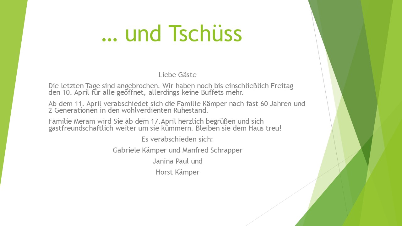 Seit über 55 Jahren kochen wir in beständig guter Qualität und bieten ab 2023 in unserem neuen Buffet-Restaurant eine schmackhafte und große Auswahl an regionalen und überregionalen Spezialitäten.
